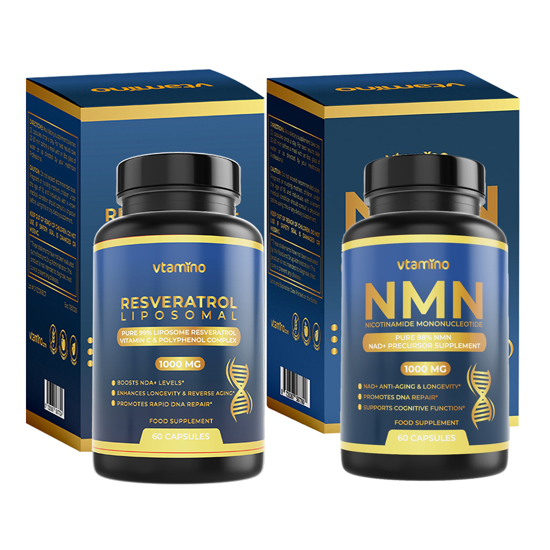 - Enhances Longevity & Reverse Aging: Combats the effects of aging by supporting the body's natural rejuvenation processes. Combining resveratrol with NAD+ precursors supports healthy cellular NAD+ levels, essential for anti-aging enzymes.